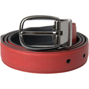 حزام دولتشي آند غابانا للرجال من الجلد الأحمر بمشبك معدني فضي