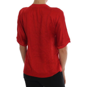 بلوزة أنيقة من الحرير الأحمر مطرزة بالزهور من دولتشي آند غابانا