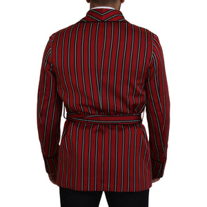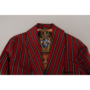 علامة تجارية جديدة رائعة مع العلامات، رداء طويل أصلي 100% من Dolce & Gabbana. تمتع بالأناقة والراحة مع هذا الرداء المخطط الفاخر، المثالي للاسترخاء الراقي. مصنوع من مزيج ناعم من البوليستر والحرير، ومبطن بالكامل بالحرير الخالص لملمس رائع على البشرة. يوفر الإغلاق بحزام مقاسًا قابلاً للتخصيص بينما يضيف الجيبان الأماميان لمسة من الأداء الوظيفي. تشهد تفاصيل الشعار الأصلية على جودة علامتها التجارية المتميزة. مصممة إلى الكمال في إيطاليا.