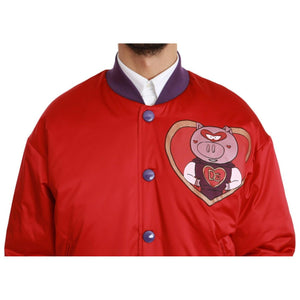 تألقي بأناقة مع سترة Dolce & Gabbana Bomber المذهلة هذه، المثالية لإضفاء لمسة جريئة على الموضة. صُنعت هذه السترة بحرفية إيطالية استثنائية، وتتميز بلون أحمر نابض بالحياة يكمله رسم حيوي متعدد الألوان، ملتزمًا بموضوع مجموعة عام الخنزير لعام 2019. يتميز بمقاس عادي مريح مع زر إغلاق مريح. يلتقي التطبيق العملي بالفخامة مع جيبين خارجيين وجيبين داخليين، بالإضافة إلى تفاصيل الشعار الأيقوني. تعتبر هذه القطعة بمثابة شهادة على الحرفية العالية، وقد تم تصميمها لأولئك الذين يعشقون التفرد وعناصر التصميم الجريئة.