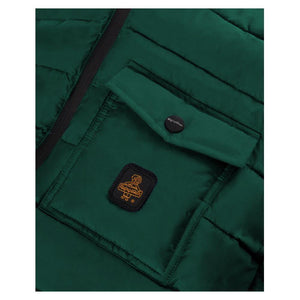 Embrace the bold cold in style with Refrigiwear’s sleek short nylon down jacket. Meticulously crafted for the modern man, this jacket features a streamlined straight collar and a versatile double-slider zip front fastening for effortless sophistication. Keep your essentials secure with practical zipped handwarmer pockets and a snap button pocket perfectly placed on the heart side. An additional inside pocket ensures your valuables are close at hand. Cut for a slim fit, this green garment is a true emblem of trendsetting outerwear.