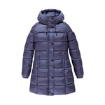 Refrigiwear long nylon down jacket with real down padding, hood with drawstring, button and zip fastening, two side pockets with zip fastening