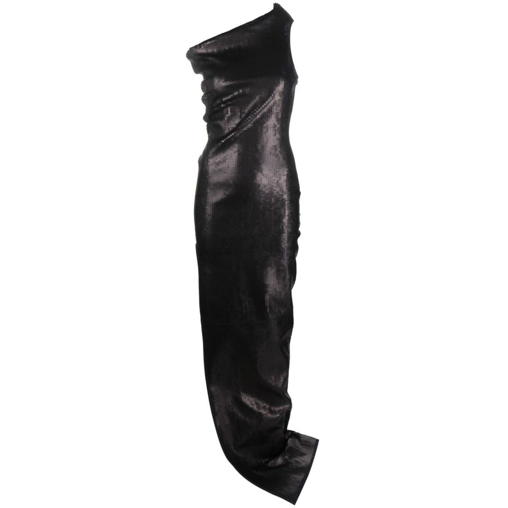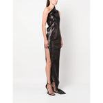 asymmetric-neck sequinned maxi dress from Rick Owens featuring jet black, stretch-cotton, matte finish, sequin embellishment, draped panel detail, asymmetric neck, rear zip fastening, single shoulder strap, sleeveless, side slit, asymmetric hem and floor-length. Embroidered denim long dress Size and Fit - This piece fits true to size. We recommend you get your regular size. Model is 1,75m / 5ft 8in wearing size 40 (IT)