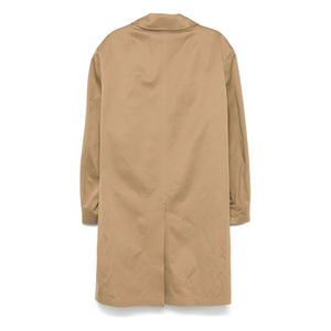 medium beige cotton gabardine weave concealed front button fastening classic collar long sleeves two side slit pockets central rear vent removable faux-fur lining straight hem Cotton coat Size and Fit - This piece fits true to size. We recommend you get your regular size. Model is 1,84m / 6ft 1in wearing size 48 (IT)