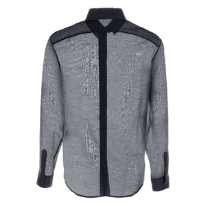 Transparent shirt, pointed collar, long sleeves and front buttons. Silk shirt Size and Fit - This piece fits true to size. We recommend you get your regular size. Model is 1,84m / 6ft 1in wearing size 39 (COLLAR CM)