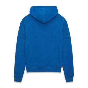 logo-embroidered cotton hoodie from SAINT LAURENT featuring cobalt blue, cotton, drawstring hood, long sleeves, straight hem, ribbed cuffs and hem and front pouch pocket. Logo cotton hoodie Size and Fit - This piece fits true to size. We recommend you get your regular size. Model is 1,84m / 6ft 1in wearing size M