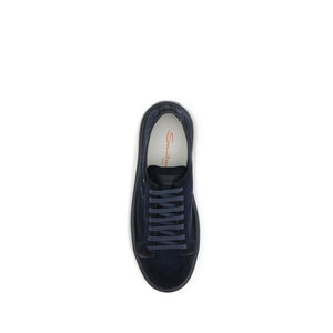 Suede Sneakers by Santoni combine craftsmanship and contemporary style. Carefully crafted, they feature a rounded toe and a classic lace-up closure. The rubber box sole ensures comfort and durability, while the tread is embellished with a double buckle in signature Santoni Orange, an iconic detail of the brand.
