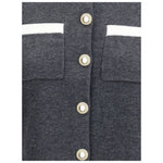 Self-Portrait’s Cardigan is an elegant garment with a vintage feel, enhanced by a contrasting classic collar that enhances the style. The two patch pockets on the front add a practical touch, while the front closure with jewel buttons lends brightness and sophistication to the design.