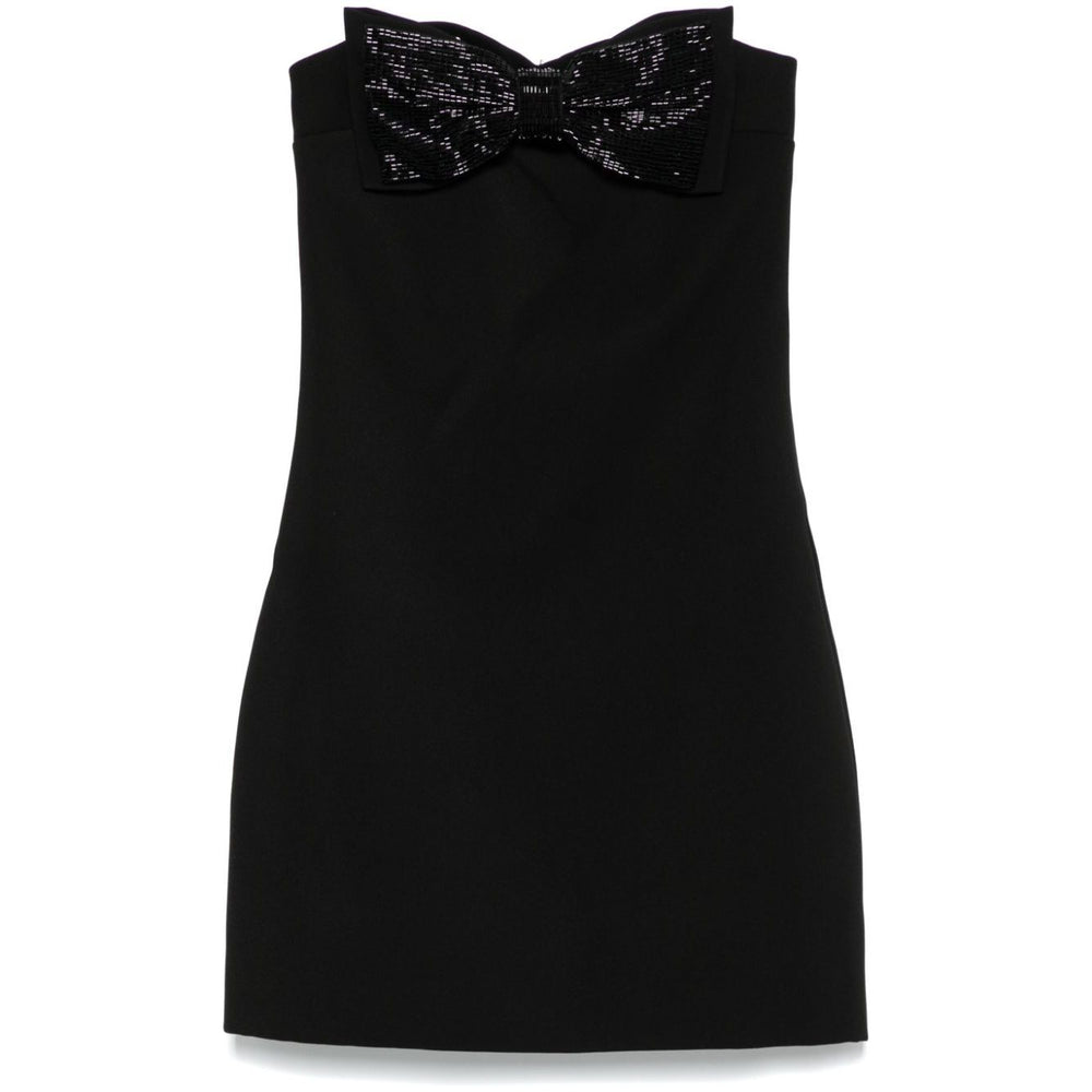black concealed rear hook and zip fastening oversize bow detail bead detailing strapless Bow detail mini dress Size and Fit - This piece fits true to size. We recommend you get your regular size. Model is 1,75m / 5ft 8in wearing size 8 (UK)