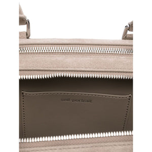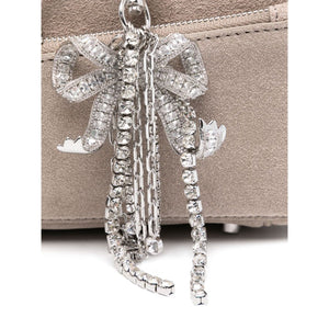 grey top zip fastening two top handles main compartment silver-tone hardware bow detailing internal slip pocket Suede baguette shoulder bag Size and Fit - Width 27 cm, Height 11 cm, Depth 9 cm, Handle 30 cm