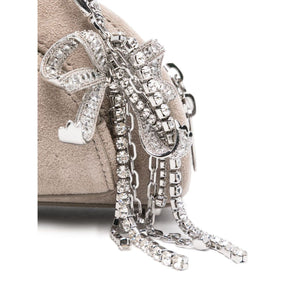 grey top zip fastening single top handle main compartment bow detailing Suede mini shoulder bag Size and Fit - Width 22 cm, Height 10 cm, Depth 7 cm, Handle 30 cm