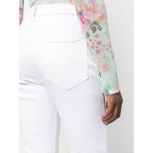 cropped slim-fit jeans from 7 FOR ALL MANKIND featuring white, cotton blend, concealed fly and button fastening, belt loops, classic five pockets and cropped leg. Slim fit denim jeans Size and Fit - This piece fits true to size. We recommend you get your regular size. Model is 1,75m / 5ft 8in wearing size 27 (WAIST CM)