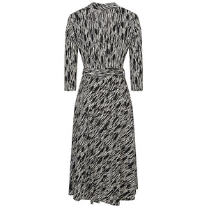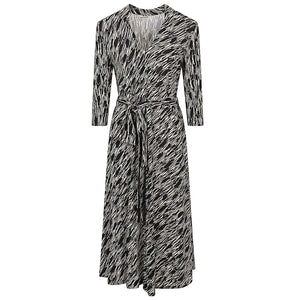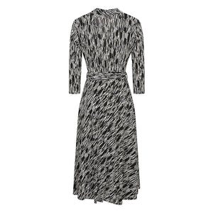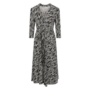Long dress with all-over multicolor print, made of viscose, V-neck, 3/4 sleeves, multicolor viscose belt, straight hem. Printed midi dress Size and Fit - This piece fits true to size. We recommend you get your regular size. Model is 1,75m / 5ft 8in wearing size 36 (FR)