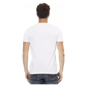 تي شيرت Trussardi Action Sleek White Cotton Blend بواجهة رسومية