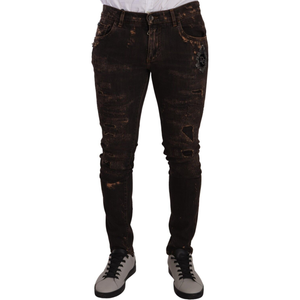 انغمس في مثال الحرفية الإيطالية مع هذا الجينز الضيق المذهل من Dolce & Gabbana. مثالي للأشخاص الذين يواكبون الموضة، يتميز هذا البنطلون بلون بني داكن ومقاس نحيف يناسب الجسم. تضيف التفاصيل المتعثرة لمسة إلى مظهرك، بينما يضفي تطريز التاج المميز D&G مظهرًا فاخرًا. مصنوع من مزيج القطن الفاخر مع لمسة من الإيلاستين لتوفير الراحة، هذا الجينز يجمع بين الأناقة والعملية ويتميز بسحاب وزر للإغلاق.