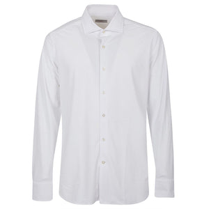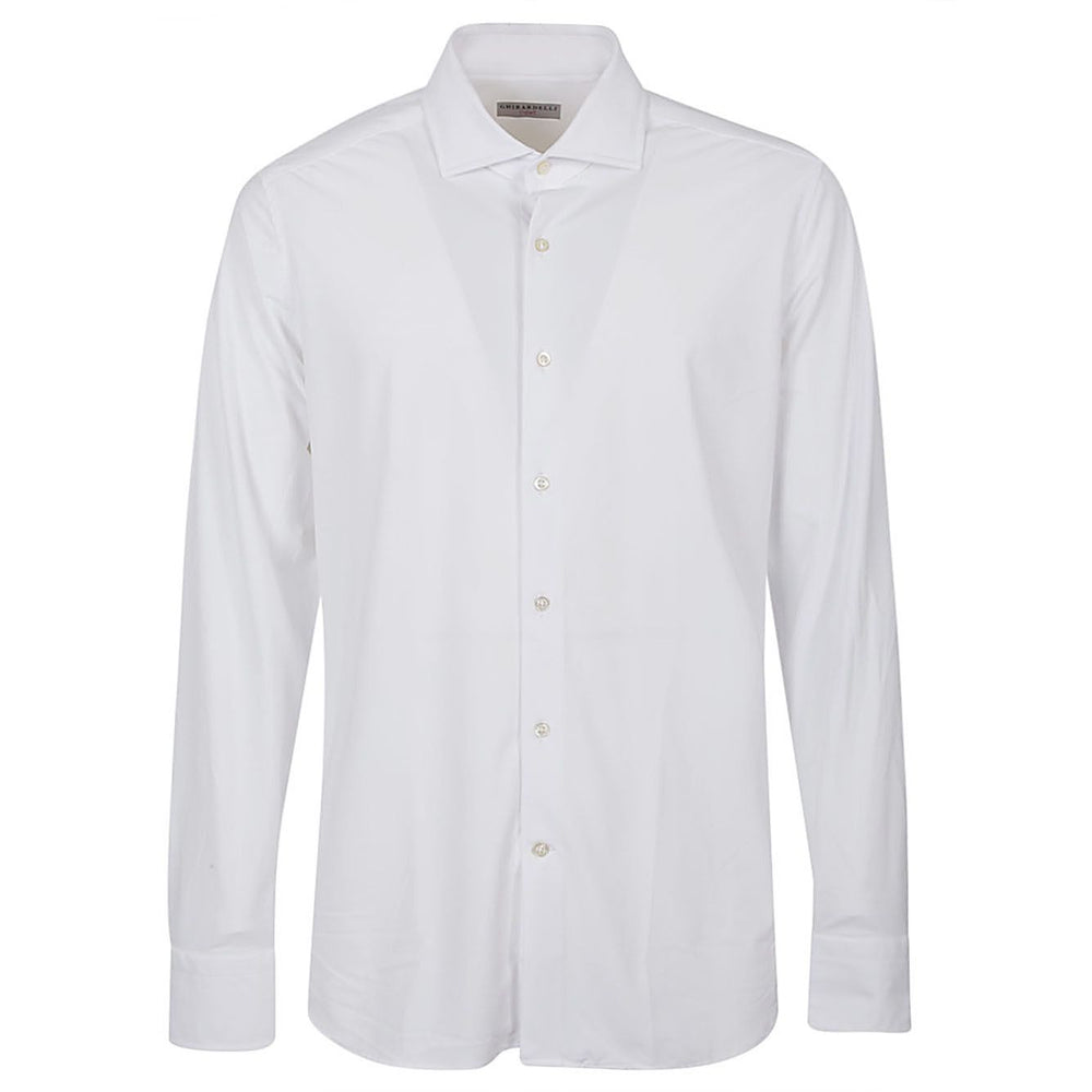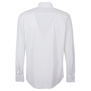 White shirt, buttons closure, high collar. Long-sleeves shirt Size and Fit - This piece fits true to size. We recommend you get your regular size. Model is 1,84m / 6ft 1in wearing size 39 (COLLAR CM)