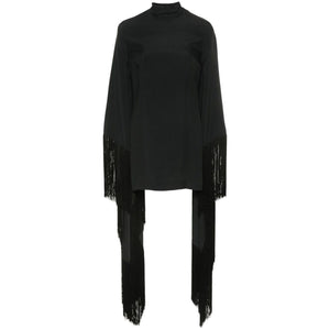 black crepe texture high neck extra-long sleeves fringe detailing to the sleeves thigh-length unlined straight hem concealed rear zip fastening rear button fastening Mini Del Mar fringed mini dress Size and Fit - This piece fits true to size. We recommend you get your regular size. Model is 1,75m / 5ft 8in wearing size 40 (IT)