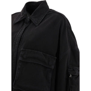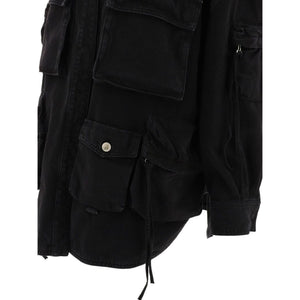 قميص أسود من القطن بياقة كلاسيكية وإغلاق أمامي مخفي وأكمام طويلة وأزرار وجيوب متعددة وحاشية منحنية المقاس والملاءمة - هذه القطعة تناسب المقاس الحقيقي. نوصيك بالحصول على مقاسك المعتاد. يبلغ طول العارضة 1.75 متر / 5 أقدام و8 بوصات وترتدي المقاس 40 (إيطاليا)