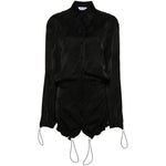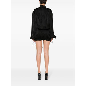 black satin weave all-over jacquard-logo pattern logo-engraved buttons box-pleat detail to the rear straight-point collar drop shoulder long sleeves drawstring cuffs thigh-length front button fastening drawstring hem unlined Logo mini dress Size and Fit - This piece fits true to size. We recommend you get your regular size. Model is 1,75m / 5ft 8in wearing size 40 (IT)