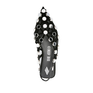 Grid rhinestone-embellished ballerina shoes from The Attico featuring black, calf leather, rhinestone embellishment, branded footbed, elasticated slingback strap, pointed toe and flat sole. Grid slingback ballets Size and Fit - Heel 0,6 in / 1,5 cm; Platform 0,4 in / 1 cm