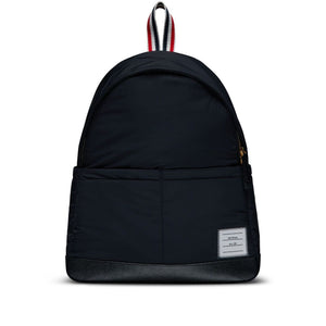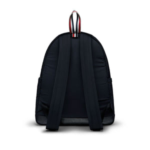 black appliqué logo two-way zip fastening single flat top handle two padded adjustable shoulder straps front patch pocket two side slit pockets main compartment striped lining internal logo tag Multipocket backpack
