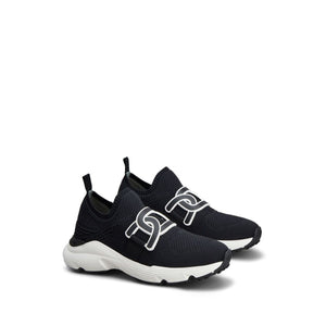 black knitted upper appliqué logo almond toe slip-on style pull-tab at the heel branded insole chunky rubber sole Kate knitted sneakers Size and Fit - Heel 1,4 in / 3,5 cm; Platform 0,4 in / 1 cm