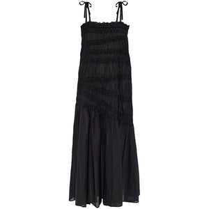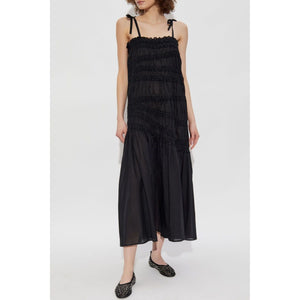 Black, cotton, pleated details, ruched details, thin straps, flared hem and mid-calf height. Long cotton dress Size and Fit - This piece fits true to size. We recommend you get your regular size. Model is 1,75m / 5ft 8in wearing size S