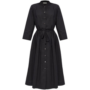 Black, cotton, model with belt, front buttoning closure, stand-up collar, 3/4 sleeves, straight hem and medium length. Cotton shirt dress Size and Fit - This piece fits true to size. We recommend you get your regular size. Model is 1,75m / 5ft 8in wearing size 4 (US)