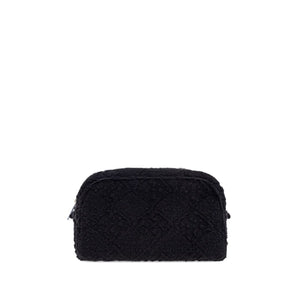 black textured surface zip fastening rounded shape logo detail Ella cotton pouch Size and Fit - Width 17 cm, Height 11 cm, Depth 9 cm