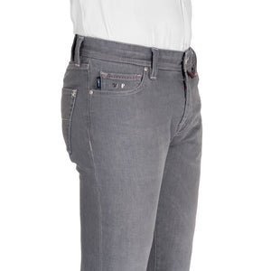 Elevate your denim collection with the distinguished touch of Tramarossa. These exquisite gray jeans blend traditional tailoring with a modern edge, crafted from premium cotton with a hint of elastane for comfort. The white stitching accentuates their refined cut, and the plush gray suede patch featuring a metal logo adds an emblem of luxury to your everyday style. Made in Italy, these are not just jeans; they’re a statement.