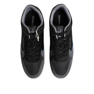 Trussardi Black Gray Lace Up Low Top Casual Sneakers Shoes