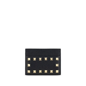 black calf leather gold-tone Rockstud detailing card slots Rockstud leather card case Size and Fit - Width 4,33 in / 11 cm