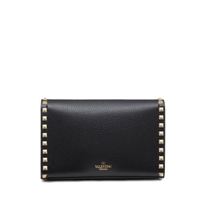 black leather signature Rockstud detailing rectangle body foldover top adjustable shoulder straps Rockstud small leather shoulder bag Size and Fit - Width 9,06 in / 23 cm
