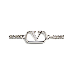 silver chain design logo plaque detail adjustable length clasp fastening VLogo Signature bracelet