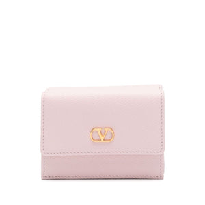 light pink press-stud fastening coin pocket internal card slots internal note compartments VLogo Signature leather wallet Size and Fit - Width 11 cm, Height 8.5 cm