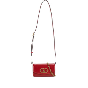 VLogo Signature Vain small leather shoulder bag Size and Fit - Width 7,48 in / 19 cm Height 4,13 in / 10,5 cm Depth 1,77 in / 4,5 cm Strap 43,31 in / 110 cm