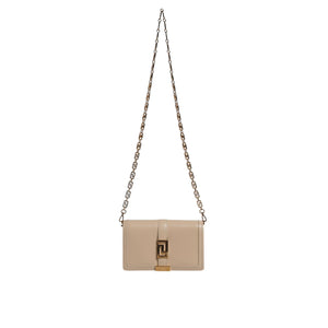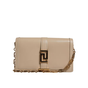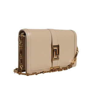 Versace Beige Gold Chain Calf Leather Wallet Crossbody Bag