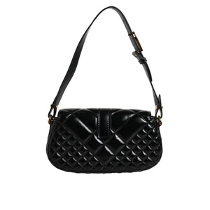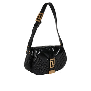 Versace Black Calf Leather Quilted Shoulder Strap Bag