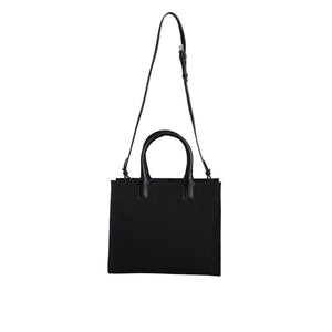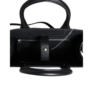 Versace Black Top Handle Canvas Leather Logo Crossbody Tote Bag