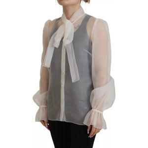 بلوزة دولتشي آند غابانا ذات الياقة البيضاء والأكمام الطويلة