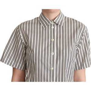 نقدم لك قميص بولو قطني أنيق من Dolce & Gabbana والذي ينضح بالأناقة غير الرسمية. هذه القطعة المذهلة جديدة تمامًا مع العلامات، وتتميز بتصميم كلاسيكي مخطط يكمله ياقة أنيقة وفتحة زر أمامية أنيقة وأكمام قصيرة مريحة. صُنع هذا القميص بطريقة صحيحة في إيطاليا، وهو مزين بتفاصيل شعار دقيقة تضيف لمسة من الفخامة إلى خزانة ملابسك اليومية.