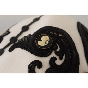 قبعة دولتشي آند غابانا بروش مطرز من الصوف باللونين الأبيض والأسود