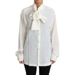 بلوزة بيضاء رائعة جديدة تمامًا مع بطاقات التعريف، أصلية 100% من دولتشي آند غابانا، مكتملة بياقة أسكوت. الموديل الملائم بأكمام طويلة مصنوع من قماش جيرسي حريري ناعم.