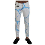 بنطلون جينز ضيق من القطن باللون الأبيض والأزرق من دولتشي آند غابانا