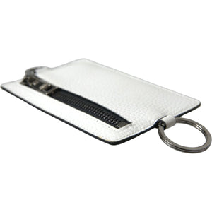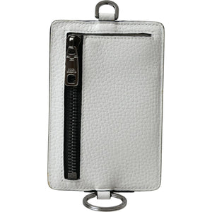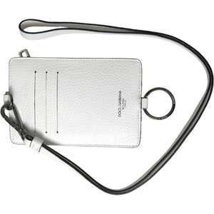 مذهل تمامًا، أصلي 100٪، جديد تمامًا مع حامل بطاقات Dolce & Gabbana المصنوع من الجلد الأبيض ويتميز برقعة منقوش عليها الشعار في الخلف، وحزام حبل قصير، وسحاب جانبي، وفتحات للبطاقات، وحلقة تثبيت.