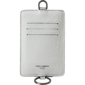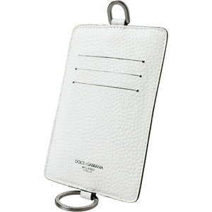 محفظة دولتشي آند غابانا بحامل بطاقات من جلد العجل باللون الأبيض مع شعار