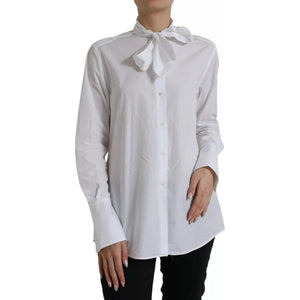 بلوزة دولتشي آند غابانا من القطن باللون الأبيض بياقة أسكوت وأكمام طويلة