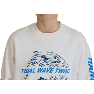 سترة نسائية طويلة الأكمام مطبوعة من القطن باللون الأبيض من Dsquared²