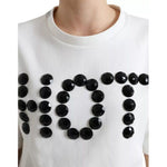 • Dolce & Gabbana White Cotton Stretch Black HOT Crystal T-shirt