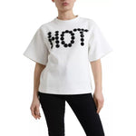 تي شيرت Dolce & Gabbana أبيض من القطن المطاطي باللون الأسود HOT Crystal